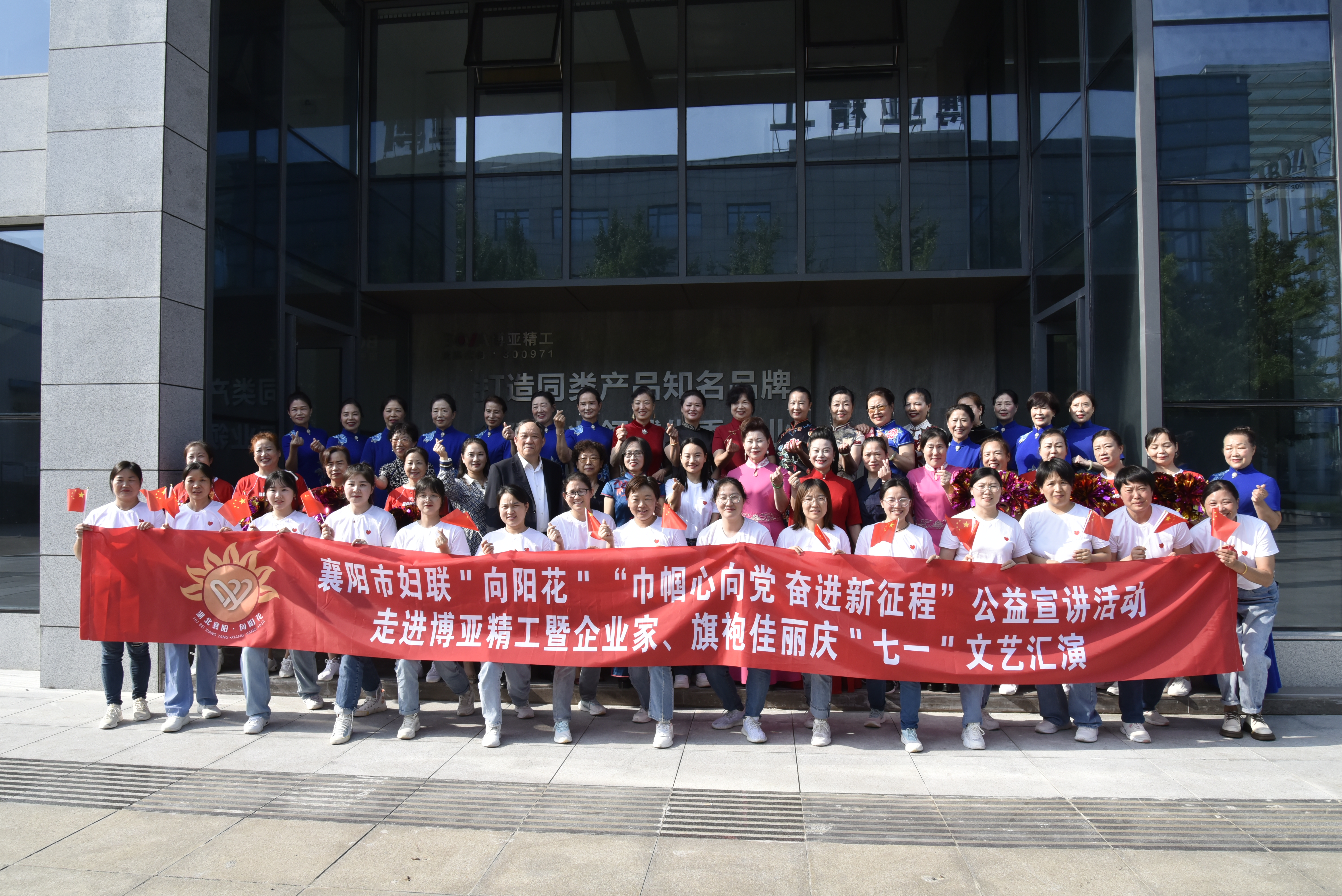 在中國共產(chǎn)黨成立102周年和傳統(tǒng)端午佳節(jié)即將來臨之際,6月20日下午,由襄陽市婦聯(lián)主辦,襄陽市社會科學界聯(lián)合會、襄陽市高新區(qū)總工會、襄陽市民管局協(xié)辦,襄陽博亞精工裝備股份有限公司、襄陽市旗袍文化研究會承辦的2023年襄陽市婦聯(lián)向陽花“巾幗心向黨 奮進新征程”公益宣講活動暨女企業(yè)家、旗袍佳麗慶“七一”文藝匯演在博亞總部隆重舉行。公司董事、財務(wù)總監(jiān)、婦委會主任康曉莉攜黨群辦公室主任嚴慶及公司女員工代表共37個人出席活動。