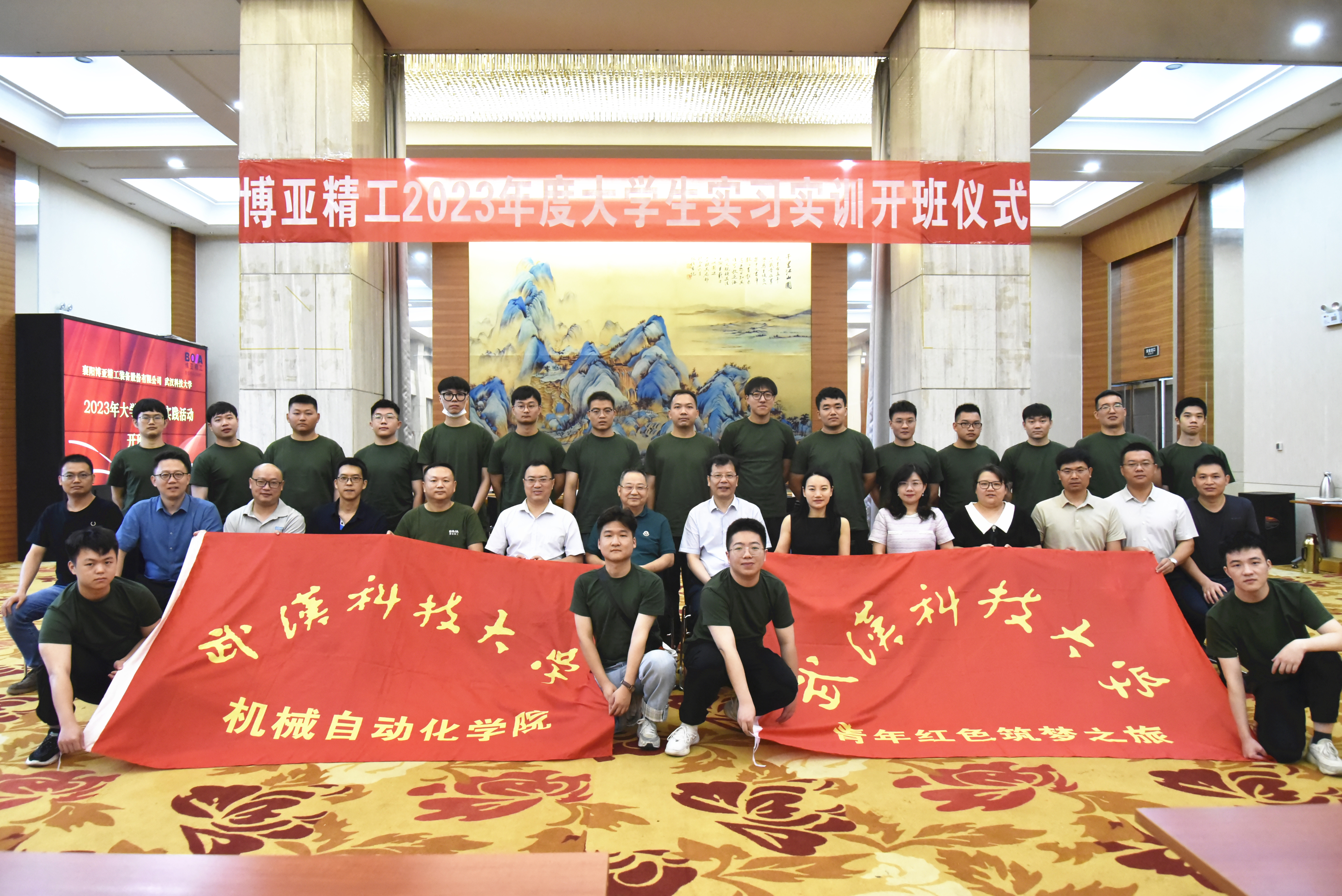 7月25日上午,博亞精工與武漢科技大學2023年大學生暑期實踐活動開班儀式在公司日產(chǎn)總部313會議室隆重舉行。儀式由公司人力資源中心總監(jiān)劉濤主持。公司李總攜財務(wù)總監(jiān)康曉莉、副總經(jīng)理鄧杰禮等相關(guān)領(lǐng)導參加。武漢科技大學科學技術(shù)發(fā)展院院長夏緒輝教授、機械自動化學院黨委副書記瞿孝平、機械自動化學院副院長王蕾副教授、綠色智能制造工程研究所副所長張澤琳副教授、機械自動化學院博士服務(wù)代表張歡博士和19名實習大學生等共同出席。
