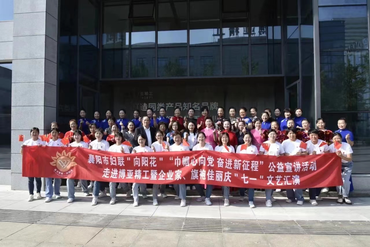 在中國共產(chǎn)黨成立102周年和傳統(tǒng)端午佳節(jié)即將來臨之際,6月20日下午,由襄陽市婦聯(lián)主辦,襄陽市社會科學(xué)界聯(lián)合會、襄陽市高新區(qū)總工會、襄陽市民管局協(xié)辦,襄陽博亞精工裝備股份有限公司、襄陽市旗袍文化研究會承辦的2023年襄陽市婦聯(lián)向陽花“巾幗心向黨 奮進新征程”公益宣講活動暨女企業(yè)家、旗袍佳麗慶“七一”文藝匯演在博亞總部隆重舉行。公司董事、財務(wù)總監(jiān)、婦委會主任康曉莉攜黨群辦公室主任嚴(yán)慶及公司女員工代表共37個人出席活動。